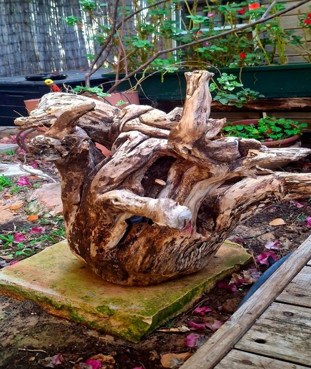 I take a walk outside, in the woods, on a beach, in the fields. The special sculpted interesting branches are always there – waiting for someone to discover them. Sometimes they dictate and determine the shape of the sculpture. Sometimes they are wide open to ideas